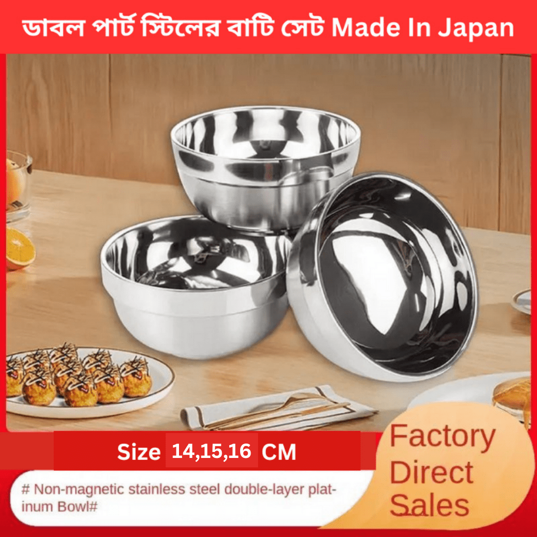1.ডাবল পার্ট Stainless Steel Double Walled Bowl 14,15,16 Cm