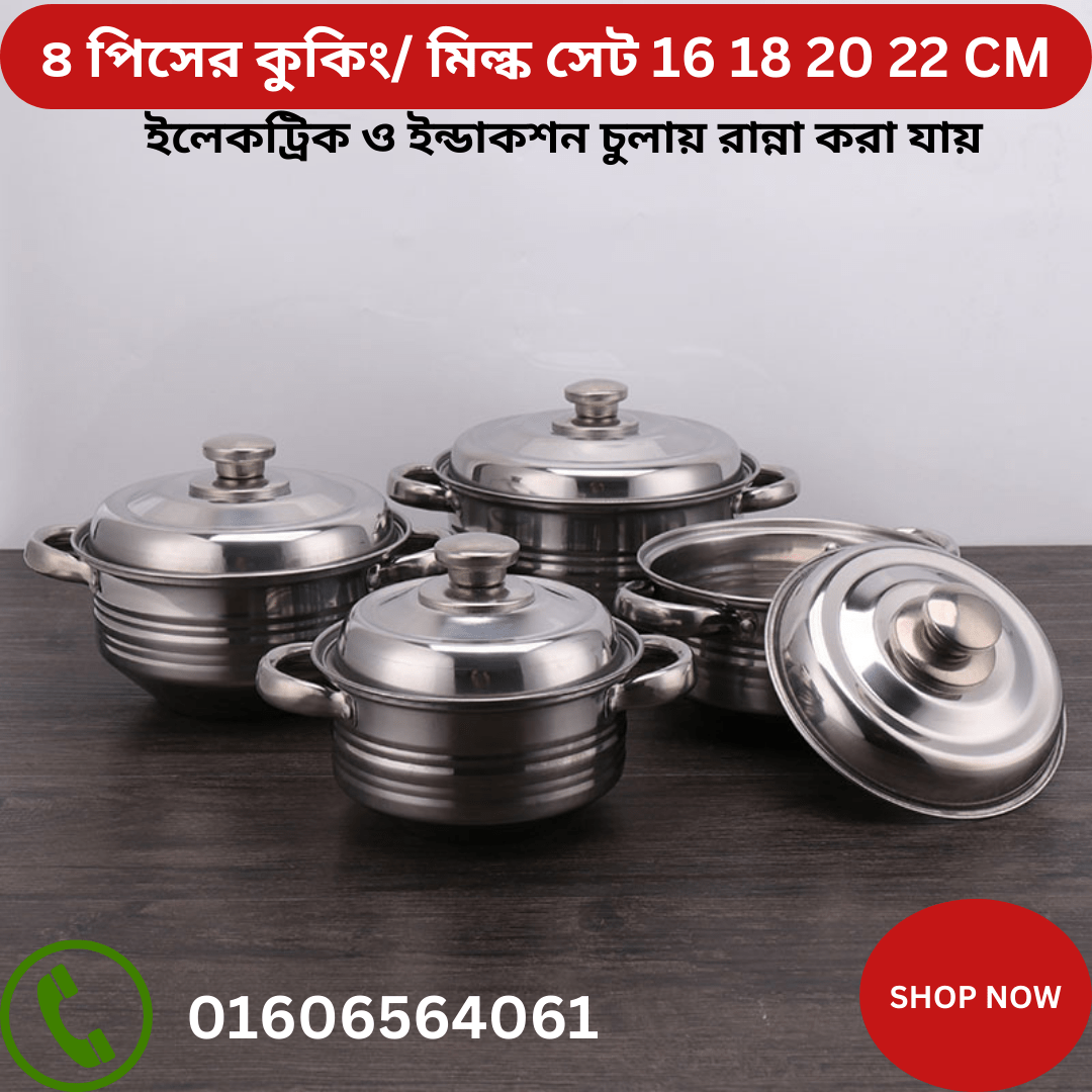 1.স্টিলের 4 পিসের Cooking set 16 18 20 22 CM