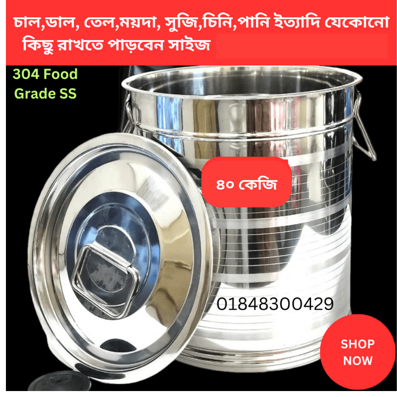 - চাল, ডাল, তেল,পানি, আটা, ময়দা, ইত্যাদি রাখার পাত্র 50 থেকে 55 কেজি