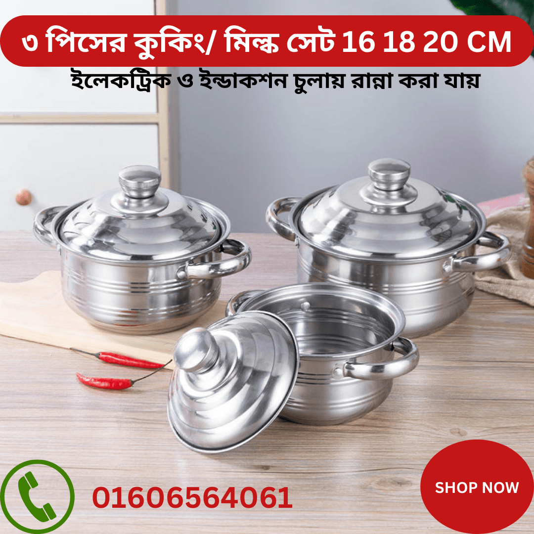 2.স্টিলের 3 পিসের Cooking set 16 18 20 CM